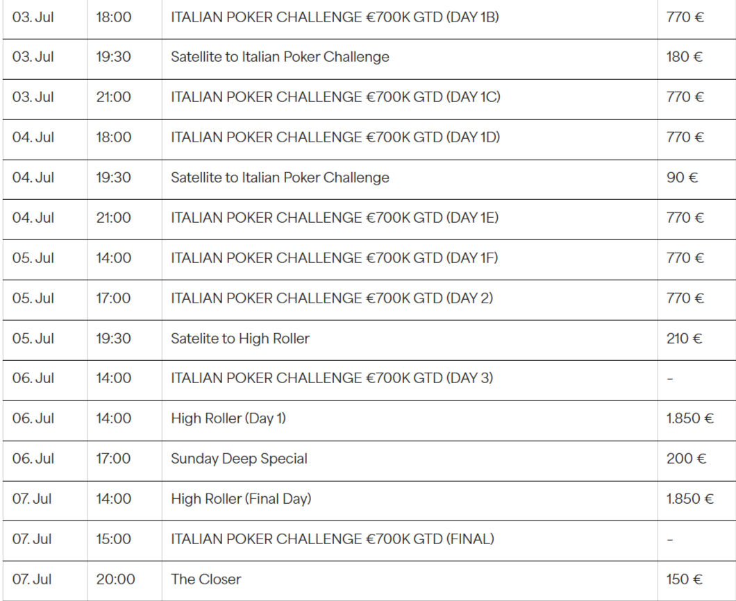 Η PokerStars ανακοίνωσε επίσημα το Italian Poker Challenge (IPC), που θα πραγματοποιηθεί στο casino Campione d’Italia από 30 Ιουνίου έως 7 Ιουλίου 2025.