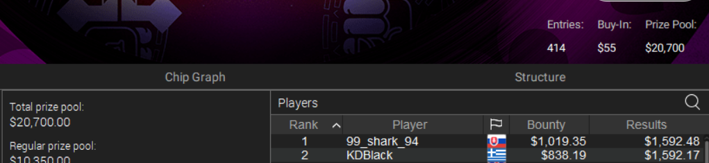 Στο heads-up του $55 Fast 7 ηττήθηκε τέλος ο “KDBlack” προσθέτοντας στον λογαριασμό του $2.430.
