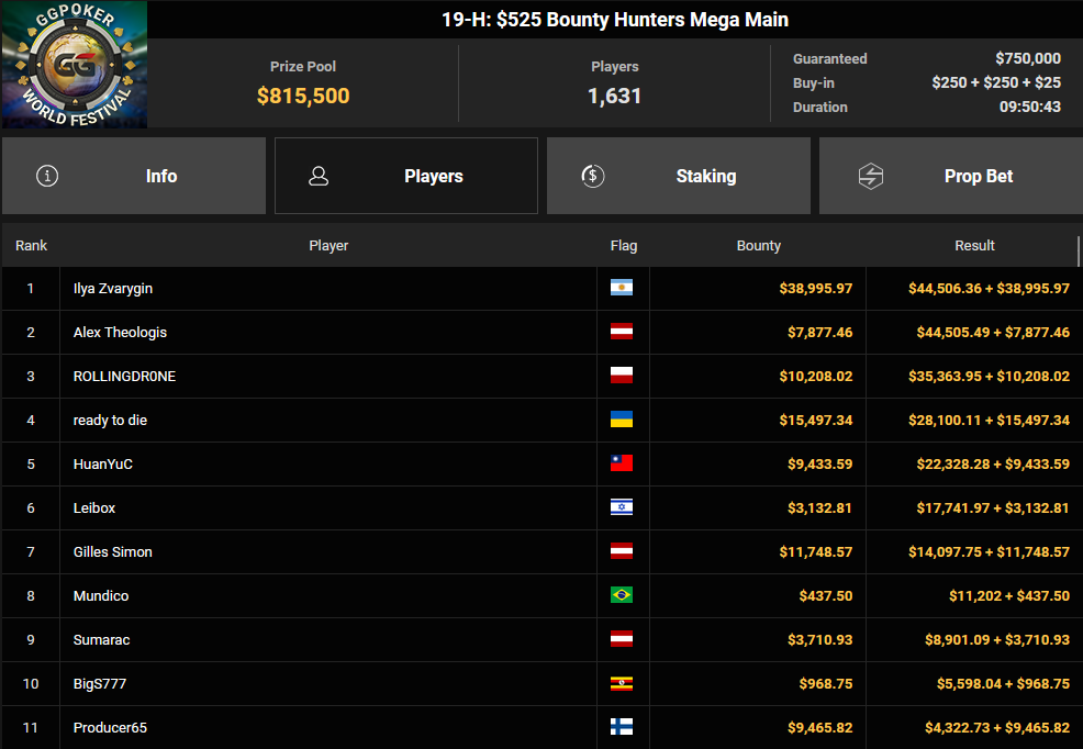 Μετά τα δύο κυριακάτικα σκορ για $84k χθες ήρθε ακόμη ένα σημαντικό cash για τον Αλέξανδρο Θεολόγη που τερμάτισε στην 2η θέση του $525 Bounty Hunters για $52.383!