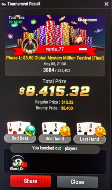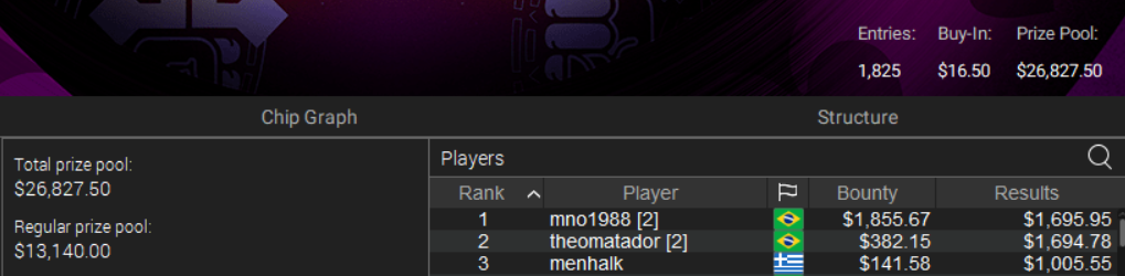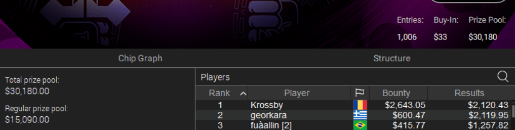 Στο heads-up του $33 Bounty Builder ηττήθηκε ο “georkara” κερδίζοντας $2.720.
