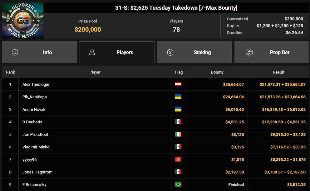 Στην 6η θέση του $525 Bounty Bonanza τερμάτισε ο Αλέξανδρος Μίχας κερδίζοντας $2.764.