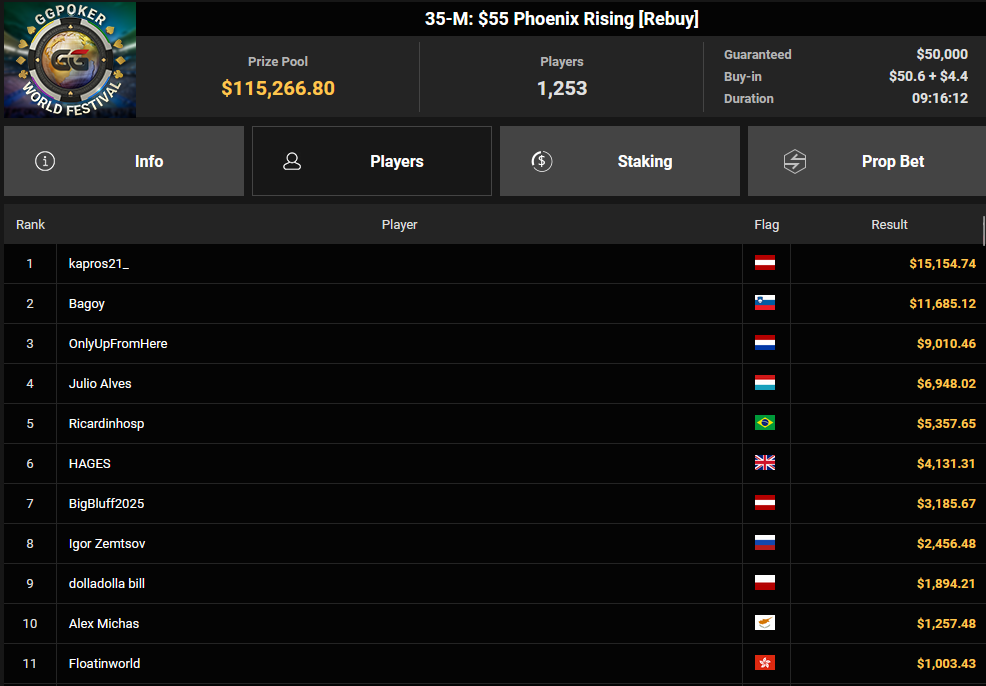 Πρωτιά και πενταψήφιο cash για τον Μάριο “kapros21_” Καπίρη που “σήκωσε” το $55 Phoenix Rising για $15.155!