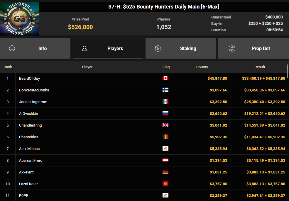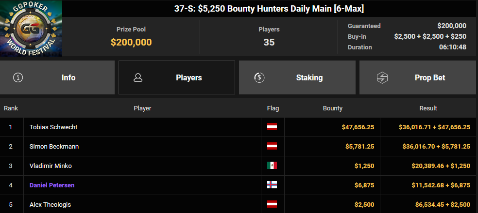 Σε χαμηλότερες “πτήσεις” τέλος χθες ο Αλέξανδρος Θεολόγης με την 5η θέση στο $5k Bounty Hunters να του αποφέρει $9.034 και την 6η θέση στο $1.500 Grand Hunters επιπλέον $3.410.