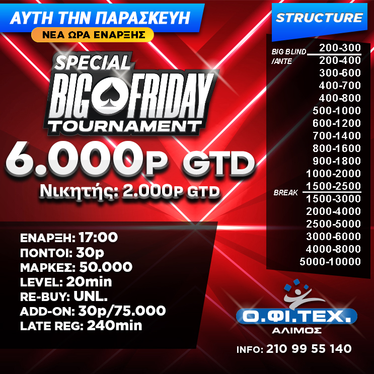 τη Big Friday (6.000p gtd) στον Άλιμο