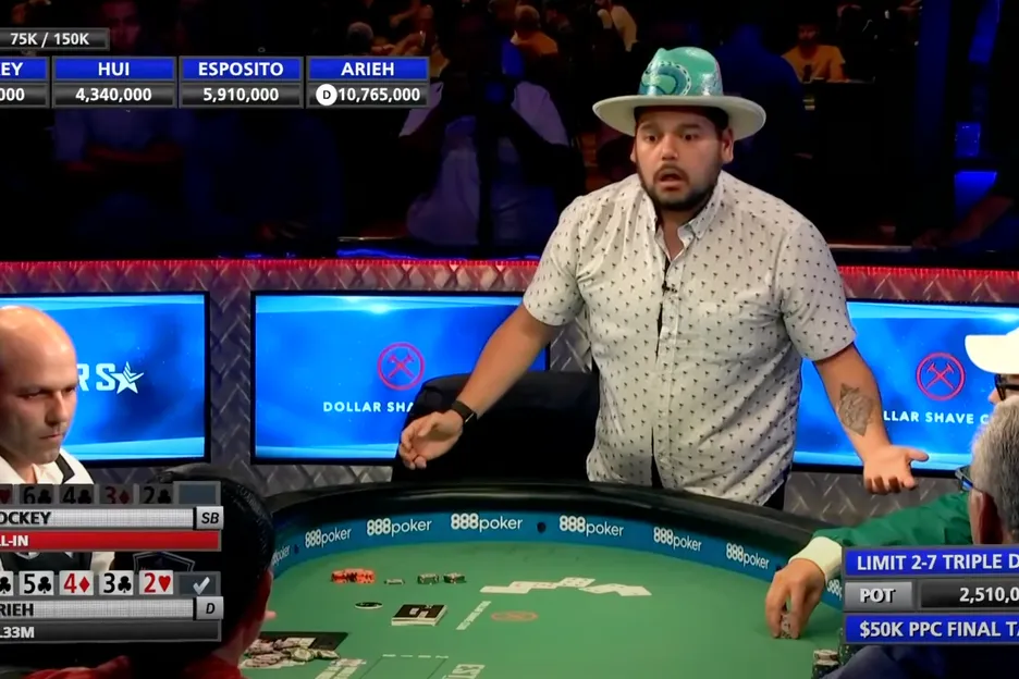 Το 2019, ο Bryce Yockey αντιμετώπισε τον Josh Arieh σε χέρι 2-7 Triple Draw στο final table του $50.000 Poker Players Championship – ένα από τα πιο απαιτητικά του WSOP. Ο Yockey ξεκίνησε με το δεύτερο καλύτερο δυνατό χέρι και είχε 99,84% πιθανότητες να κερδίσει – ακόμη και με τρεις αλλαγές.