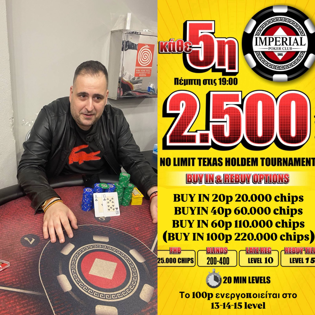 Ο Αγωνιστικός σύλλογος Texas Hold’em ‘Imperial club’ εδρεύει στη Nέστου 4 στην Πολίχνη (Ανθόκηποι), πλησίον του γηπέδου του Μακεδονικού.