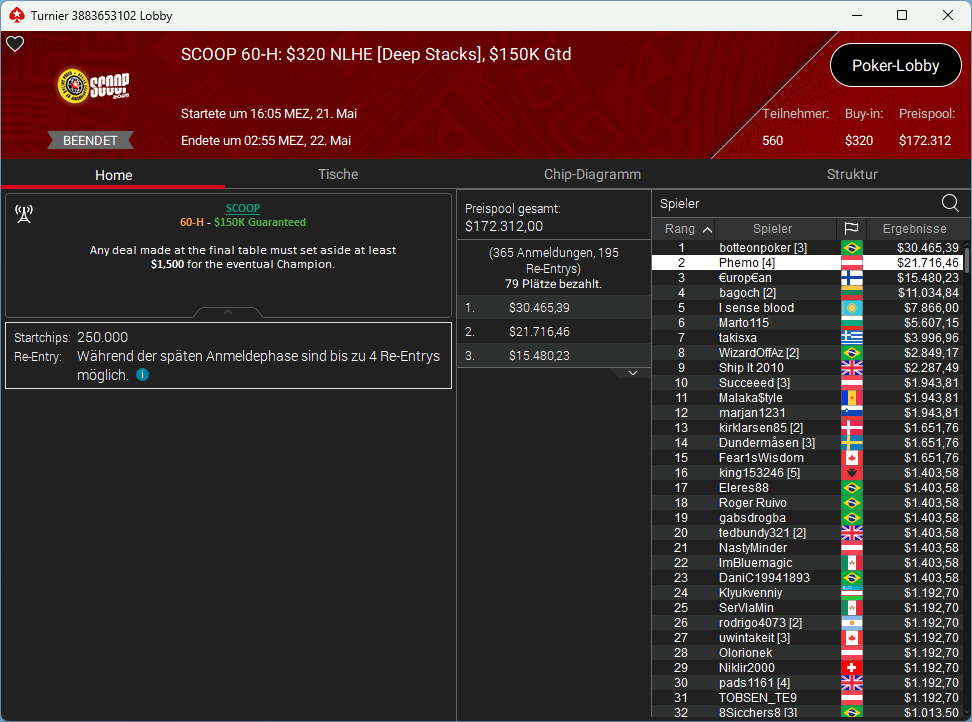 Στην 7η θέση του SCOOP 60-H ($320 NLHE) τερμάτισε ο Χρήστος “takisxa” Ξανθόπουλος κερδίζοντας $3.997.