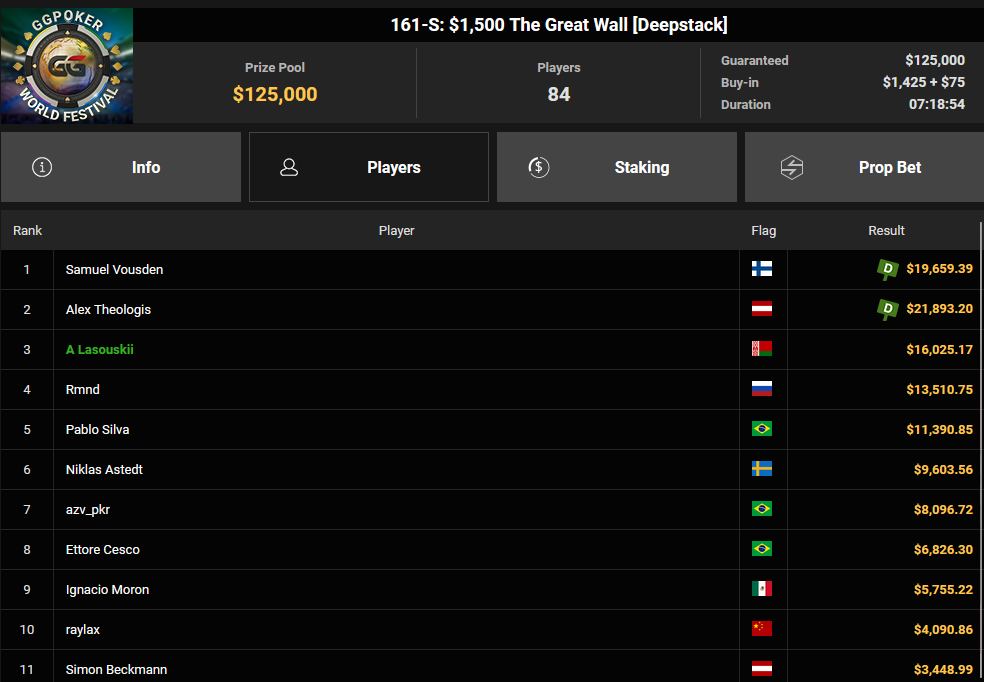 Στο heads-up του $1.500 Great Wall ηττήθηκε ο Αλέξανδρος Θεολόγης κερδίζοντας μετά από deal $21.893!
