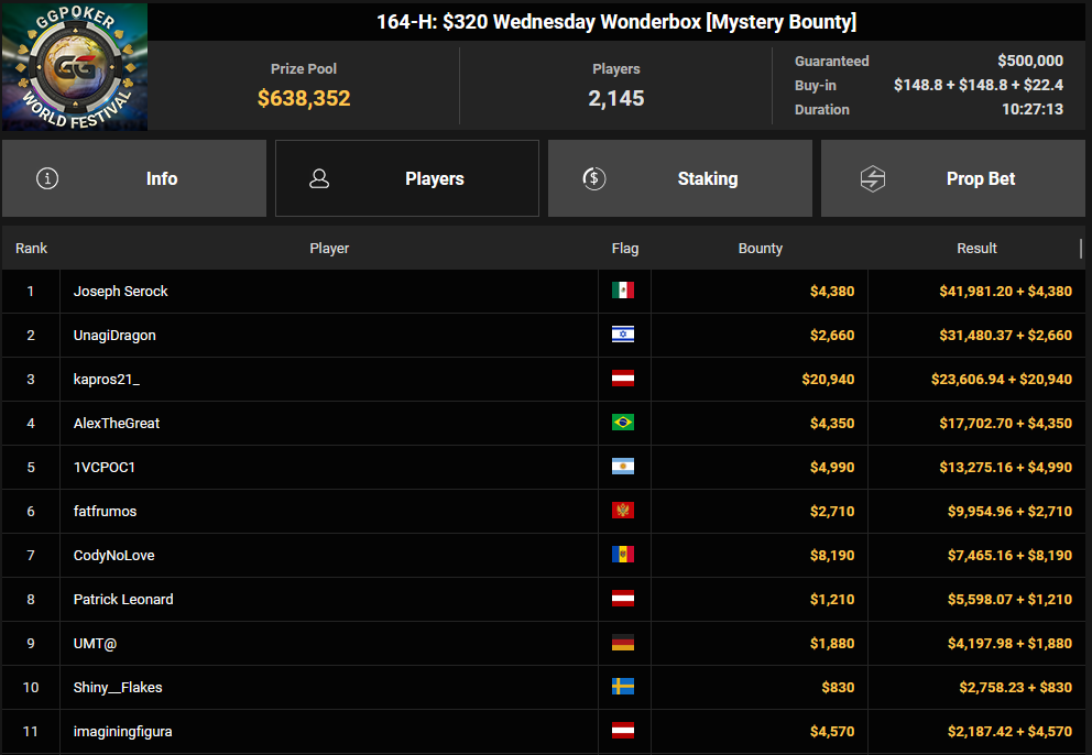 Η σειρά του Μάριου “kapros21_” Καπίρη να χτυπήσει super φάκελο ήταν χθες στο $320 Wednesday Wonderbox, με την 3η θέση να του αποφέρει συνολικά $44.547!