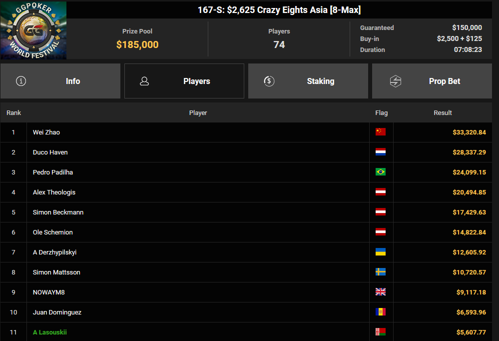 Στην 4η θέση του $2.625 Crazy Eights τερμάτισε ο Αλέξανδρος Θεολόγης κερδίζοντας $20.495!