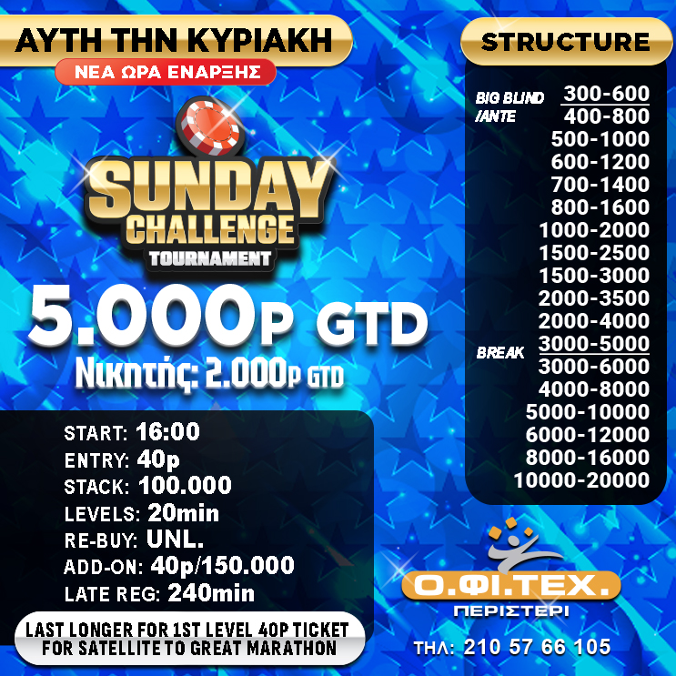το Sunday Challenge (5.000p gtd) στο Περιστέρι