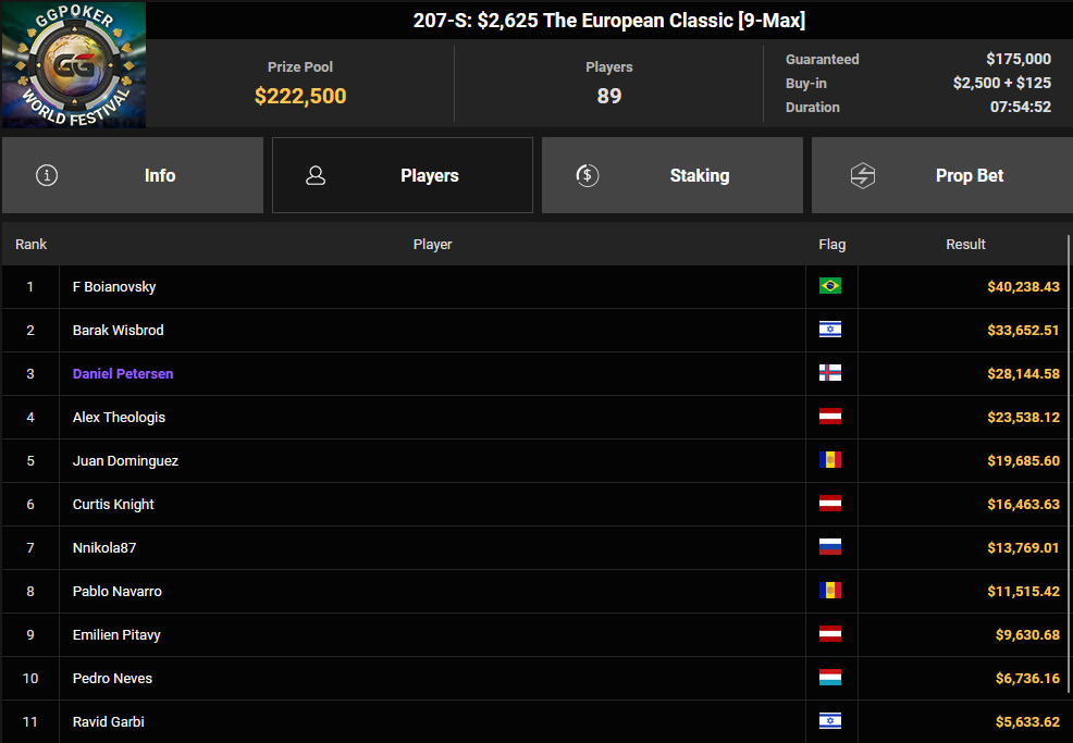 Στην 4η θέση του $2.625 European Classic τερμάτισε ο Αλέξανδρος Θεολόγης κερδίζοντας $23.538!