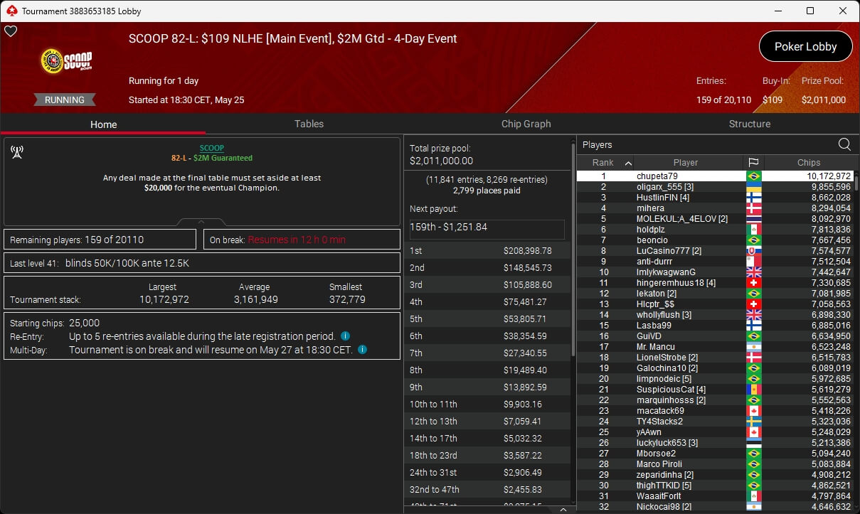 Στην 208η θέση του SCOOP 82-L ($109 NLHE) αποχώρησε τέλος ο “ΧΑRANDROS” για $1.058.