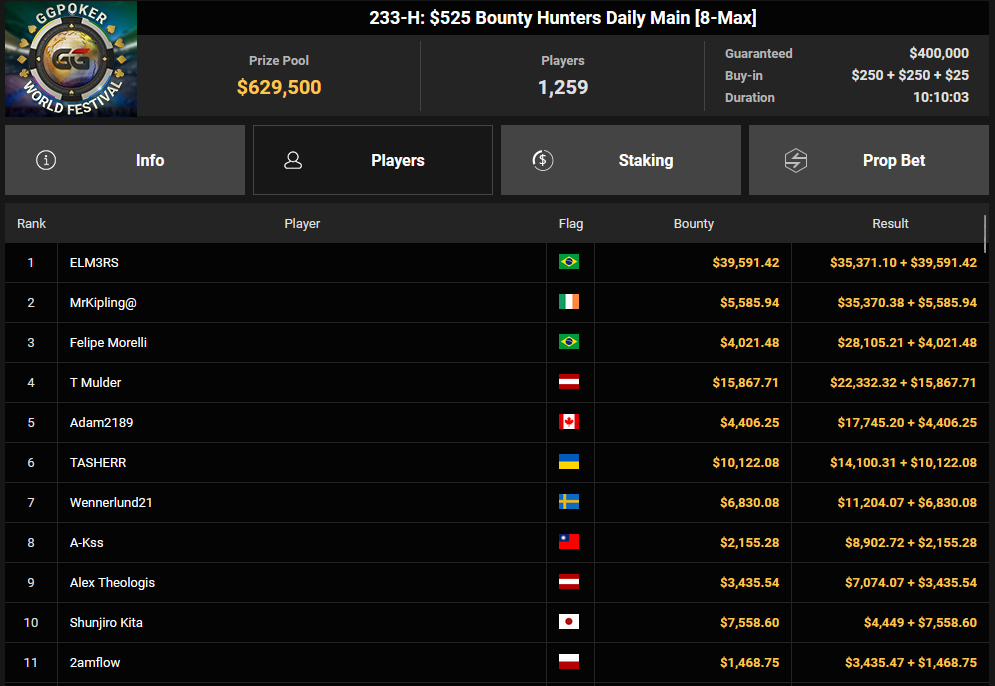 Στην 9η θέση του $525 Bounty Hunters τερμάτισε τέλος ο Αλέξανδρος Θεολόγης εξασφαλίζοντας $10.510!