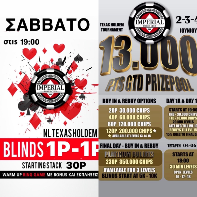 Ο Αγωνιστικός σύλλογος Texas Hold’em ‘Imperial club’ εδρεύει στη Nέστου 4 στην Πολίχνη (Ανθόκηποι), πλησίον του γηπέδου του Μακεδονικού.