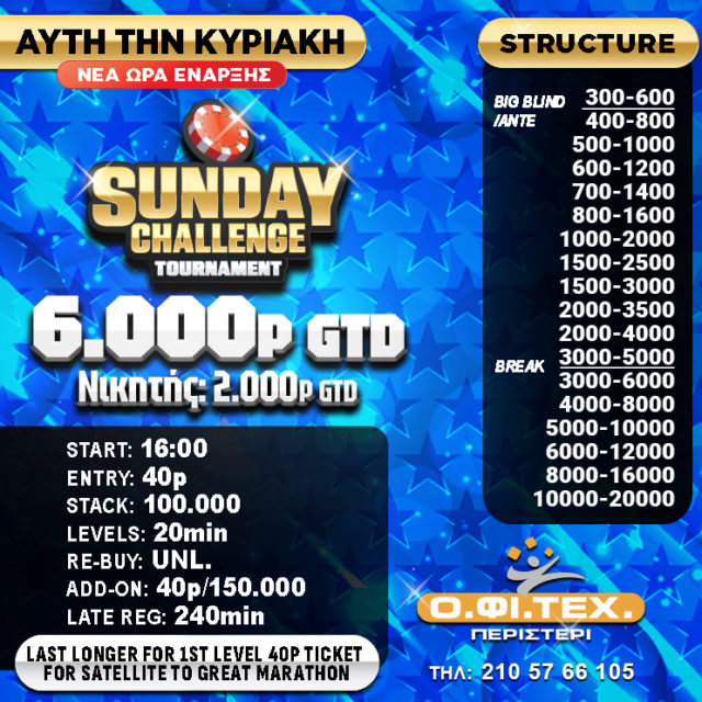 Στις 16:00 το Sunday Challenge (6.000p gtd)