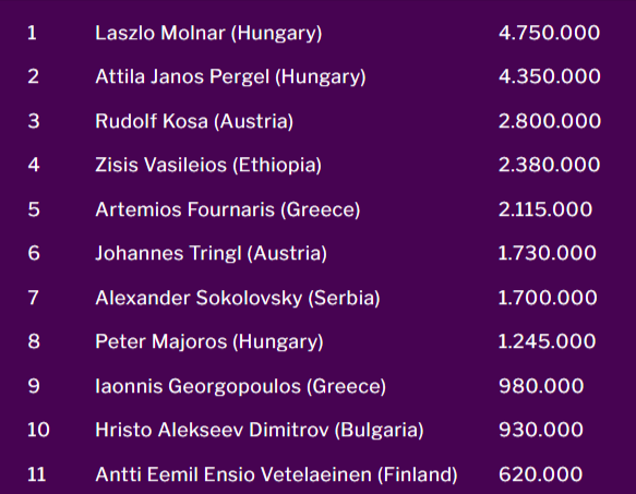 Βαγγέλης Καϊμακάμης: 14η θέση για €6.500