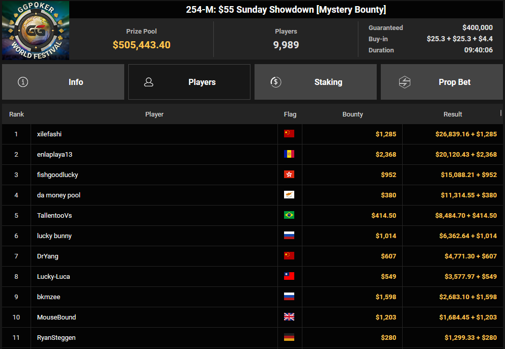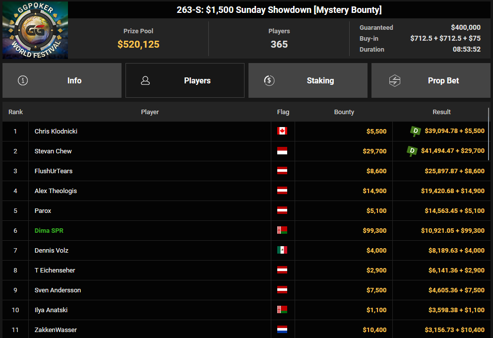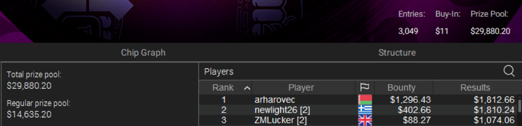 Στο heads-up του $11 Bounty Builder ηττήθηκε ο “newlight26” κερδίζοντας $2.213.