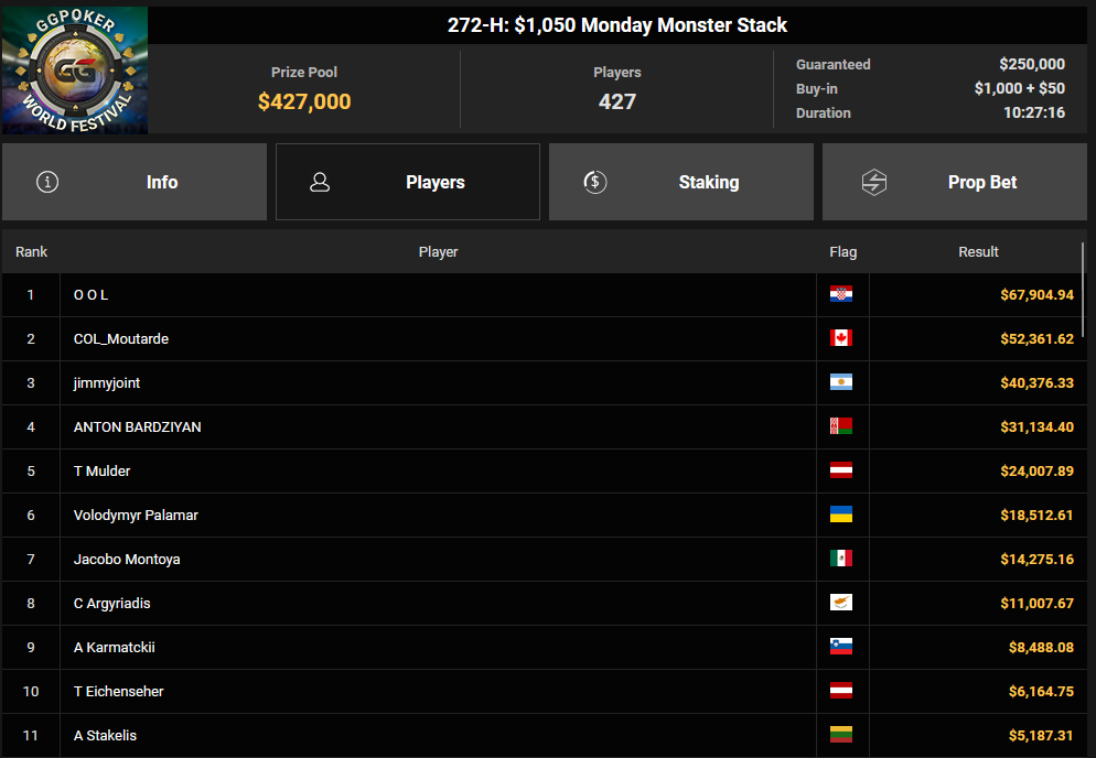 Στην 8η θέση του $1.050 Monday Monsterstack αποκλείστηκε ο Χρήστος Αργυριάδης για $11.008!