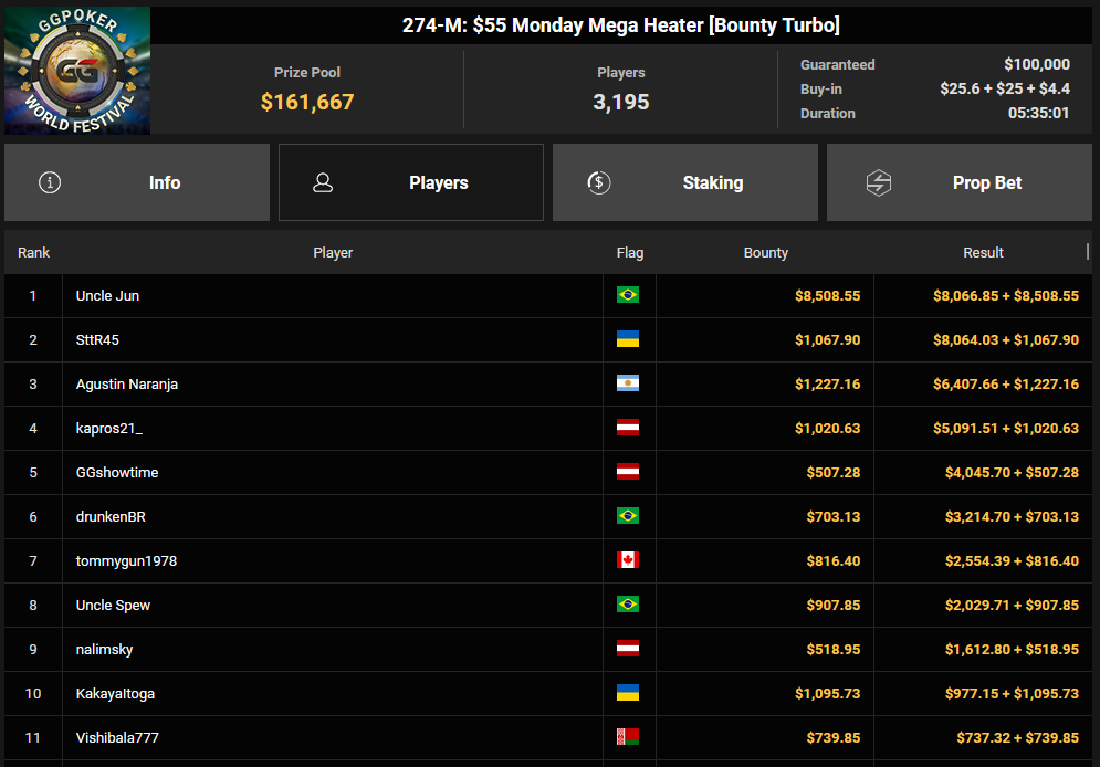 Στην 4η θέση του $55 Monday Mega Heater αποχώρησε ο Μάριος “kapros21_” Καπίρης εξασφαλίζοντας $6.112.