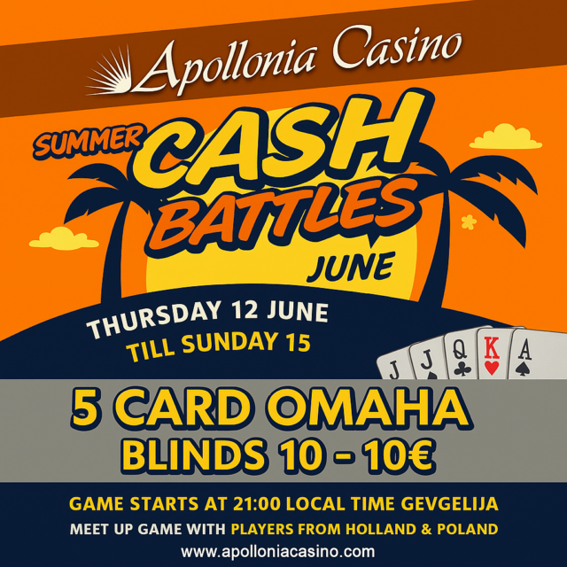 Από τις 21:00 και μετά και κάθε βράδυ θα “τρέχουν” €5/€5 PLO4 games και €10/€10 PLO5 games με τις ιδανικότερες συνθήκες για τους παίκτες που θα θελήσουν να λάβουν μέρος.
