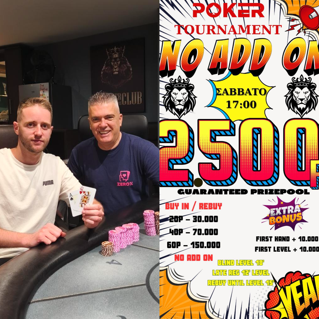 Λίγο νωρίτερα όπως κάθε Σάββατο (17:00) η έναρξη του No Addon που συνοδεύεται και πάλι από 2.500p gtd! Για τους φίλους των ring games φυσικά δεν θα λείπουν και τα Texas/PLO games τις βραδινές ώρες.