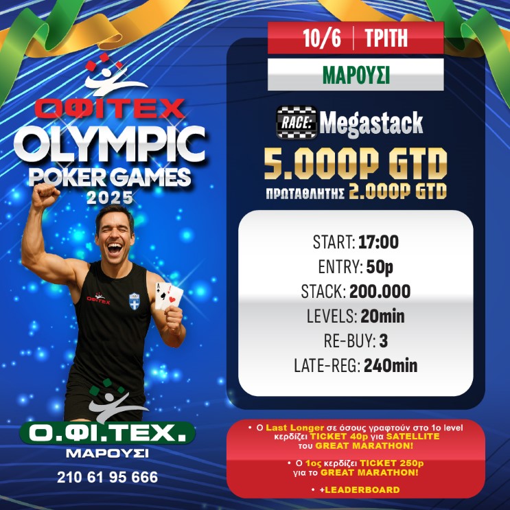 Ο.ΦΙ.ΤΕΧ.: Deal στο Mini Marathon, Megastack με 5.000p gtd στο Μαρούσι