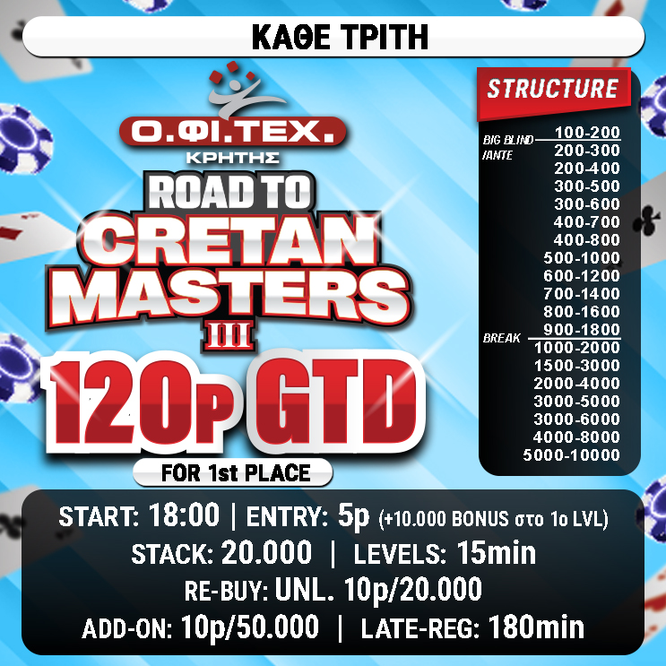 Καθυστερημένες εγγραφές και δικαίωμα για 3 rebuys τα πρώτα 180 λεπτά