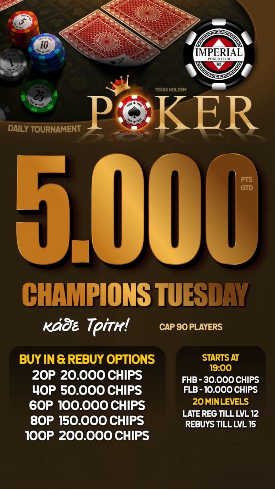 Ο Αγωνιστικός σύλλογος Texas Hold’em ‘Imperial club’ εδρεύει στη Nέστου 4 στην Πολίχνη (Ανθόκηποι), πλησίον του γηπέδου του Μακεδονικού.