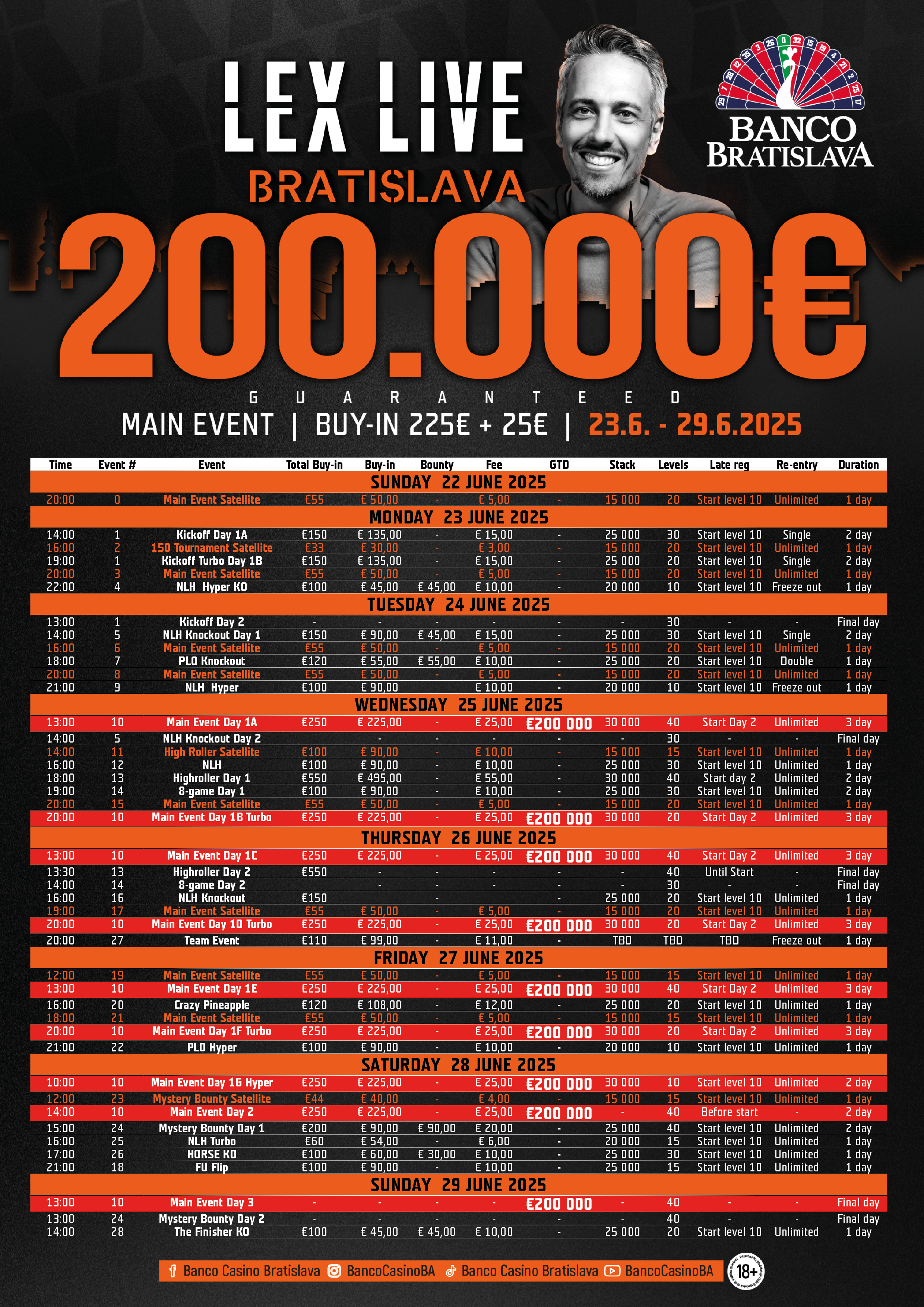 Mία ελληνοκυπριακή ενδεκάδα μπαίνει στη μάχη της Day 2 του €225 + €25 Lex Live main event που φιλοξενείται στο καζίνο Banco στη Μπρατισλάβα.
