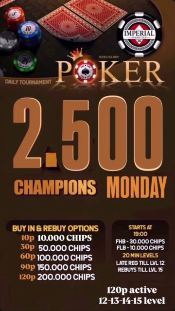 Ο Αγωνιστικός σύλλογος Texas Hold’em ‘Imperial club’ εδρεύει στη Nέστου 4 στην Πολίχνη (Ανθόκηποι), πλησίον του γηπέδου του Μακεδονικού.