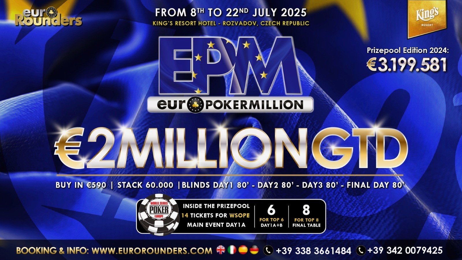 Το €300 main event συνοδεύεται από €150.000gtd που πλαισιώνεται από side events και προκριματικούς.