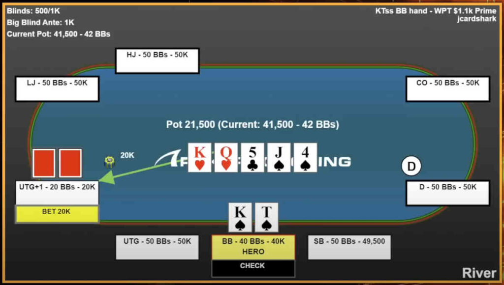. Κάνουμε check και ο αντίπαλος ποντάρει 20.000, σχεδόν full pot.