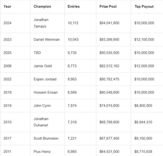 “Kλείδωσαν” φυσικά και τα νούμερα των πληρωμών με 1.461 παίκτες να εξασφαλίζουν από $15.000 και το νικητή εκ νέου αυτή τη χρονιά να κερδίζει $10.000.000!