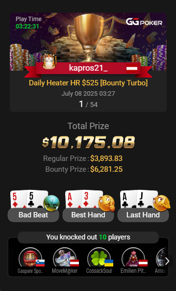 Πενταψήφιο cash και πάλι για τον Μάριο “kapros21_” Καπίρη που “σήκωσε” το $525 Daily Heater για $10.175!