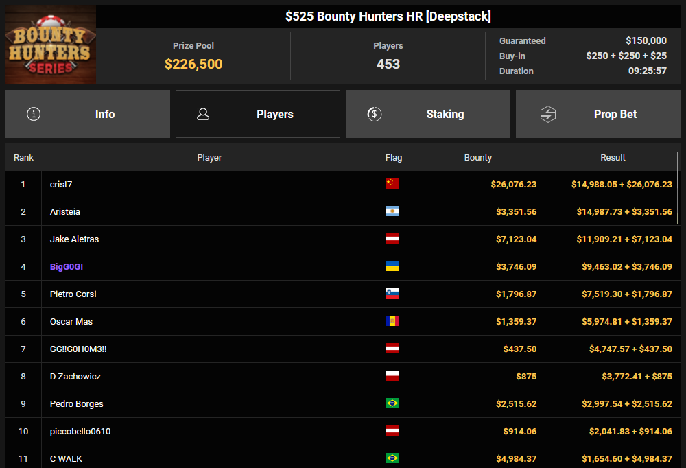 Final table για δεύτερη συνεχόμενη μέρα στο $525 Bounty Hunters o Jake, τερματίζοντας και πάλι στην 3η θέση για $19.862!