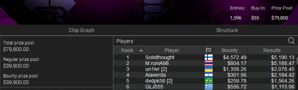 Στην 6η θέση του $55 Bounty Builder τερμάτισε ο “GLJ555” για $1.671.