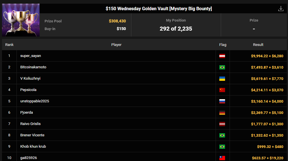 Πρωτιά για τον Μανώλη “super_sayan” Λιβανό στο $150 Wednesday Golden Vault που του απέφερε $16.274!