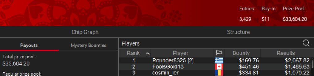 Στην κορυφή του $11 Mystery βρέθηκε τέλος ο “Rounder8325” για $2.238.
