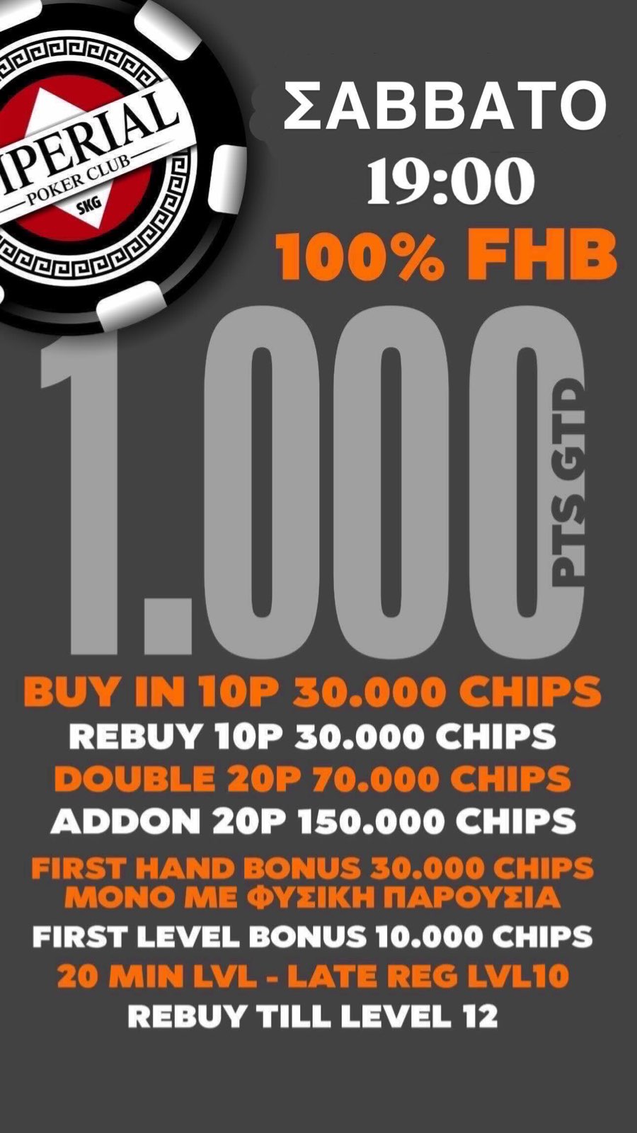 Bonus 30.000 chips αν είστε παρόντες στο πρώτο hand