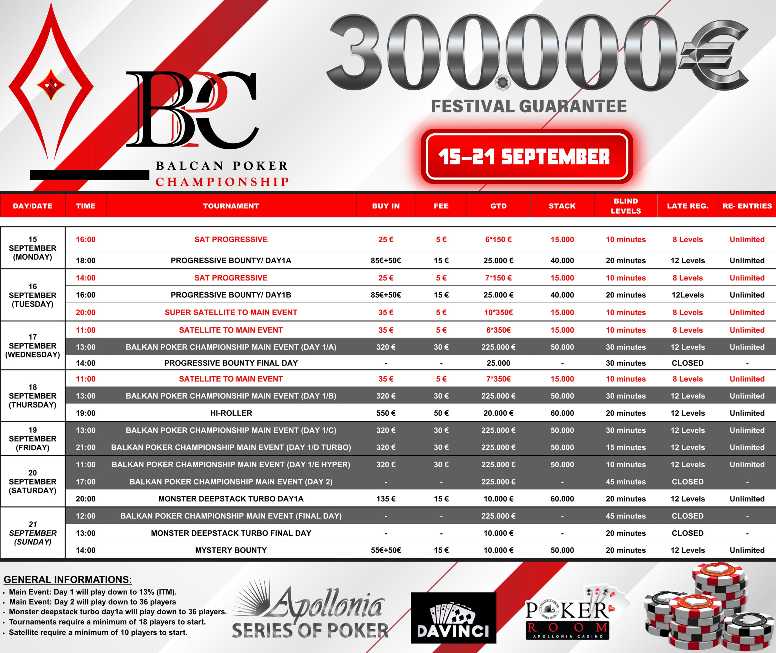Για περισσότερες πληροφορίες και κρατήσεις, επισκεφθείτε την ιστοσελίδα https://www.balkanpokerchampionship.com