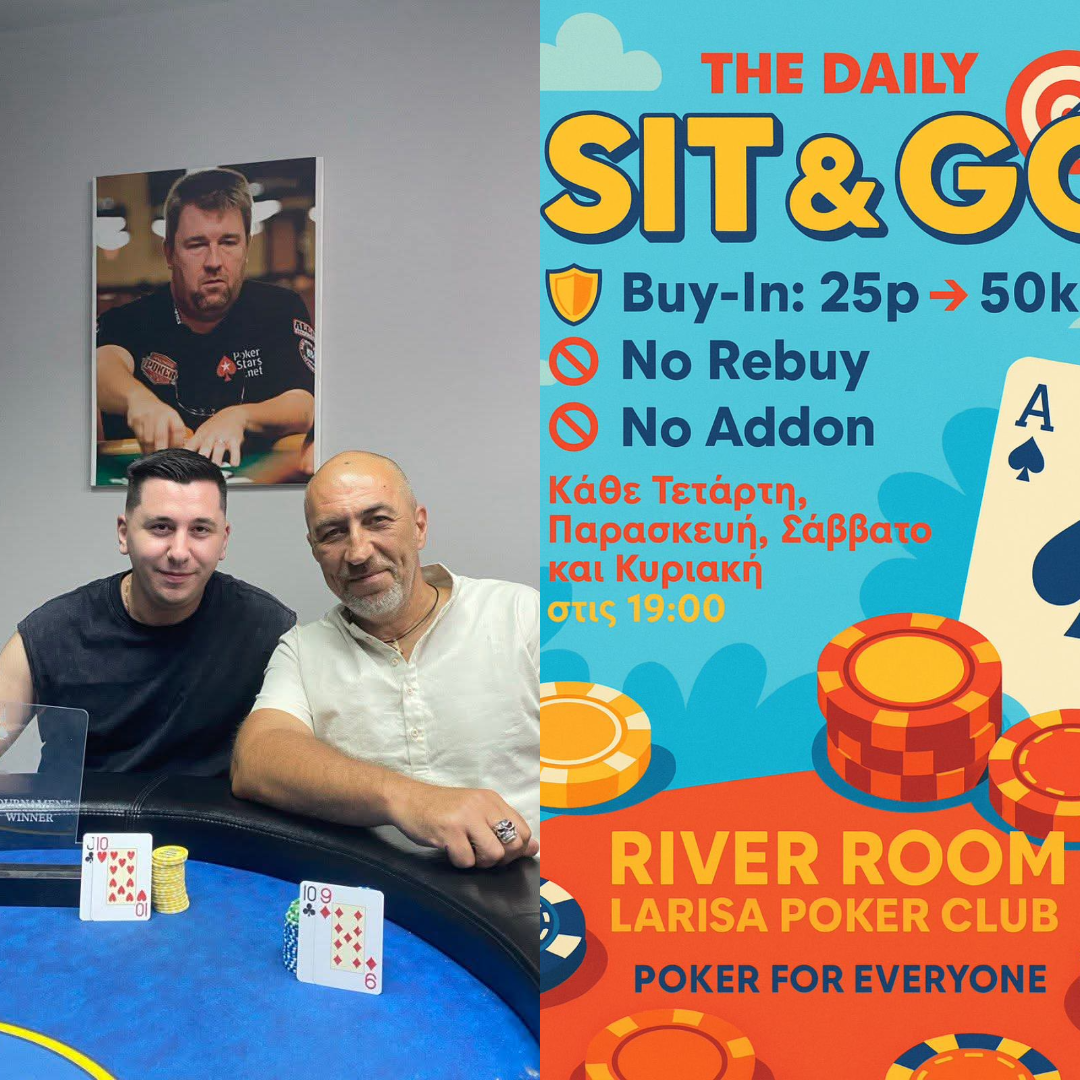 Ο σύλλογος ‘River room poker club’ εδρεύει στην οδό Γρηγοροπούλου 1, δίπλα στα Υπεραστικά Kεντρικά ΚΤΕΛ της Λάρισας.