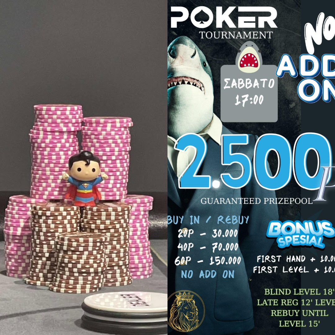 Λίγο νωρίτερα όπως κάθε Σάββατο (17:00) η έναρξη του No Addon που συνοδεύεται και πάλι από 2.500p gtd! Για τους φίλους των ring games φυσικά δεν θα λείπουν και τα Texas/PLO games τις βραδινές ώρες.