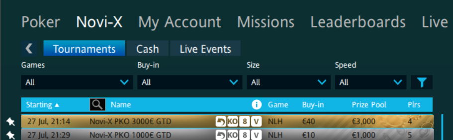 • Στις 21:30 το €10 NLH PKO με €1.000gtd