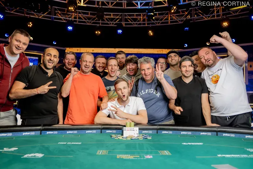 Παρεμπιπτόντως, αυτό ακριβώς συνέβη και το 2018 – παίξαμε για το βραχιόλι την τέταρτη μέρα και το τελειώσαμε μέσα σε 20 λεπτά. Όταν τελείωνε ο χρόνος στην τρίτη μέρα, μας έδωσαν επιλογή – ή παίζετε για άλλη μία ώρα ή το αφήνετε για αύριο. Εγώ ήμουν ήδη εξαντλημένος, δυσκολευόμουν να σκεφτώ καθαρά, και ο αντίπαλός μου το κατάλαβε, οπότε επέμενε να παίξουμε. Εγώ ήθελα να αναβάλουμε το heads-up για την επόμενη μέρα, αλλά δεν τα βρήκαμε, οπότε έπρεπε να το λύσουμε με κλήρωση. Του πρότεινα να τραβήξουμε μικρό φύλλο, δεν δέχτηκε – ήθελε να τραβήξει μεγάλο. Τραβάει και βγάζει ρήγα καρό! Δεν είχα πολλή πίστη στην τύχη μου, οπότε ζήτησα από τη dealer να τραβήξει για μένα – και βγάζει ρήγα κούπα.