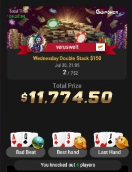 Ο “veruswelt” είδε μάλιστα το χθεσινό του session να ολοκληρώνεται με ένα δυνατό cash, τερματίζοντας στην 2η θέση του $150 Wednesday Double Stack για $11.775!