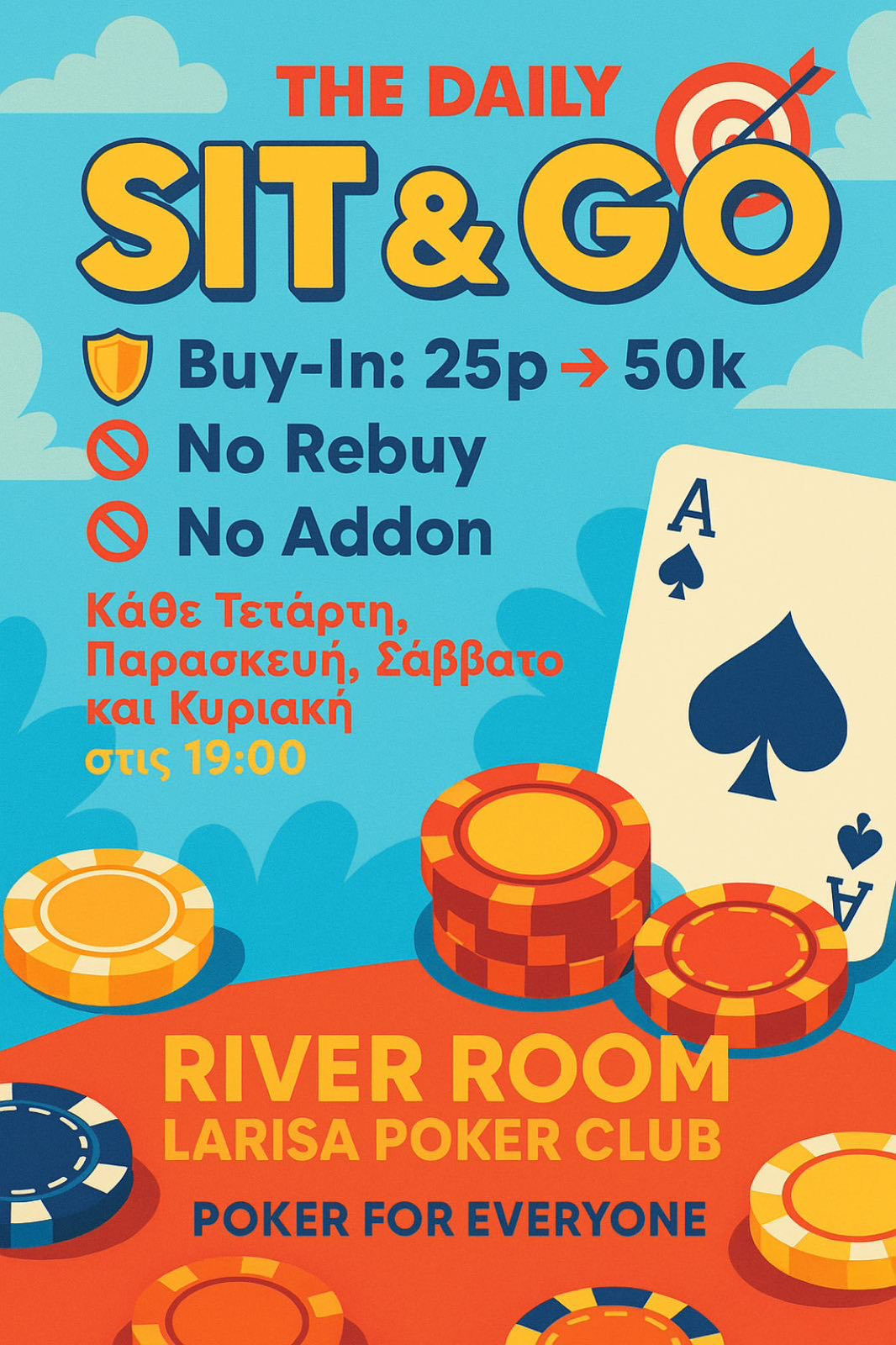 Kάθε Τετάρτη το River room της Λάρισας υποδέχεται τα μέλη του για super δράση σε sit & go και ring games!