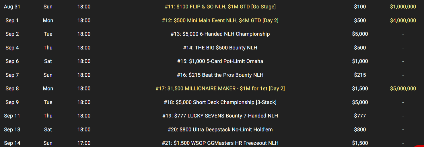• 25 Aυγούστου: $215 Mystery Millions – Με $1.000.000 top bounty και συνολικά $10.000.000gtd