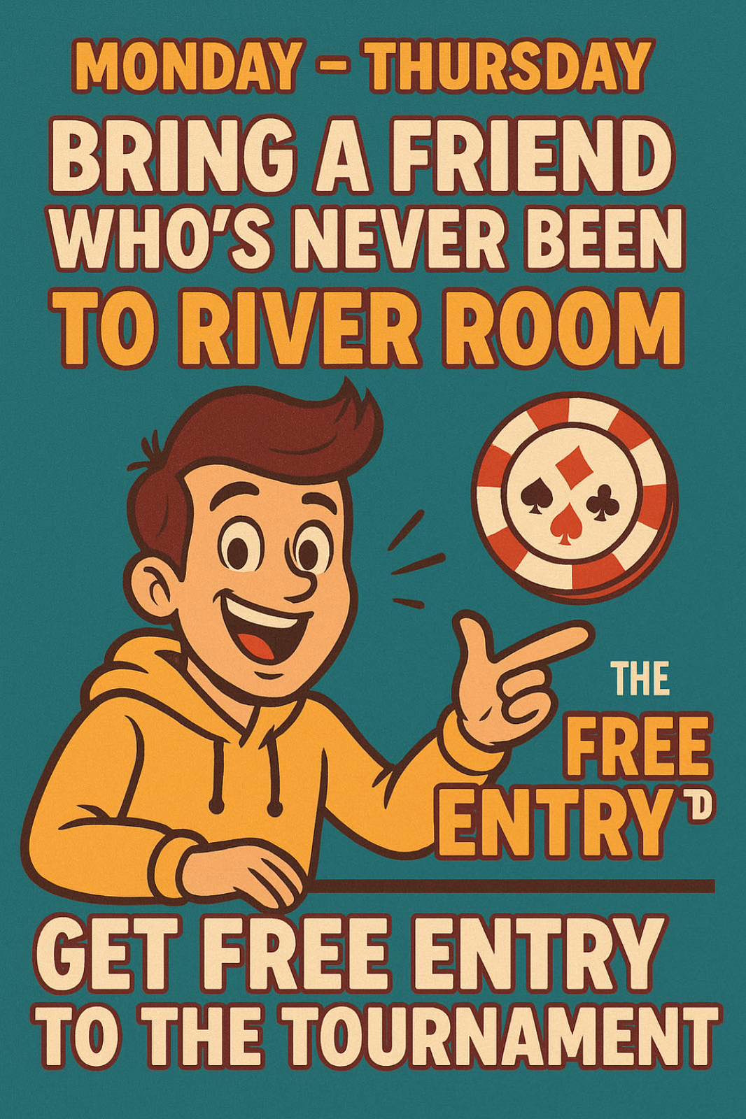 - Όσοι φέρουν κάποιον παίκτη που δεν έχει ξανάρθει στο River room κερδίζουν free entry στο τουρνουά!