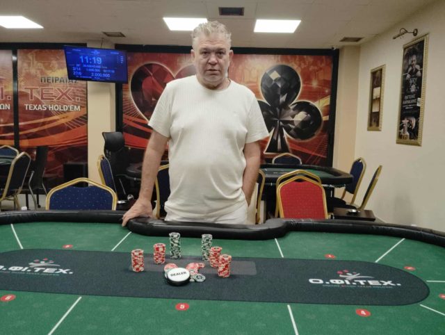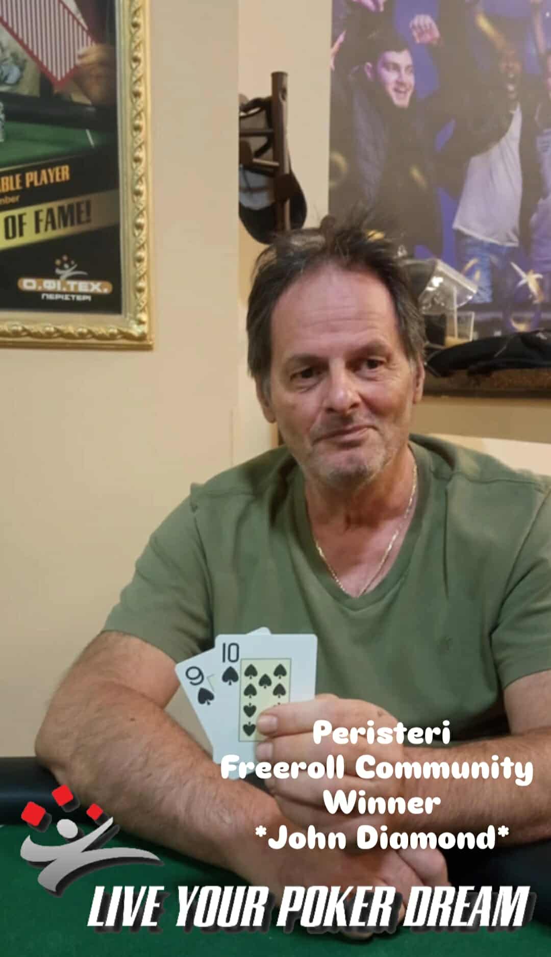 Στη Hot Monday (18e/9r/10a) o Αξαρλής βρέθηκε στην κορυφή για 500p, ενώ το freeroll του Περιστερίου κατέληξε στον John Diamond της φωτογραφίας.